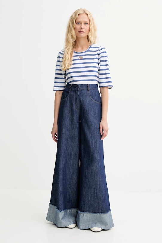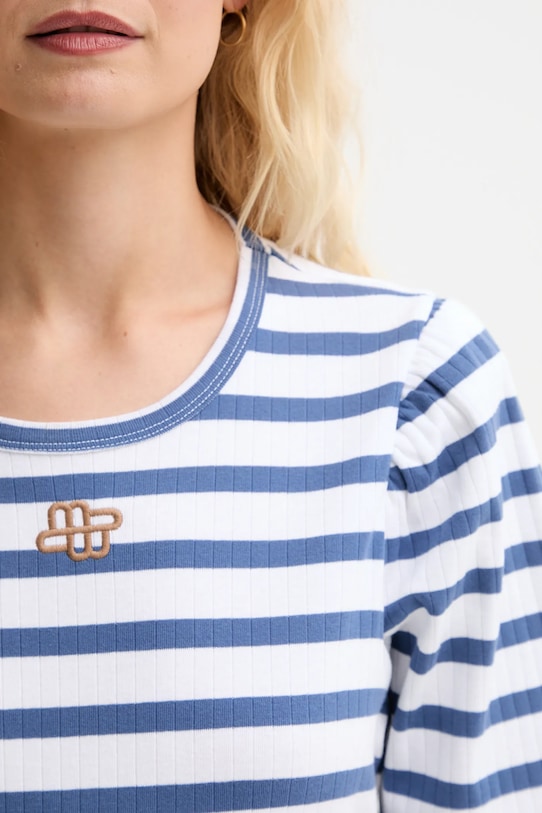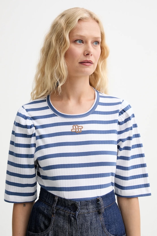 Эта футболка из коллекции MUNTHE выполнена из тонкой, эластичной ткани на основе дышащего хлопка. - Этот продукт изготовлен из сертифицированного органического хлопка, который выращен и собран из растений, не содержащих ГМО, без использования химических удобрений и пестицидов. - Простой дизайн, не стесняющий движений. - Круглый ребристый вырез. - Короткие, пышные рукава. - Вышитый логотип бренда на груди.