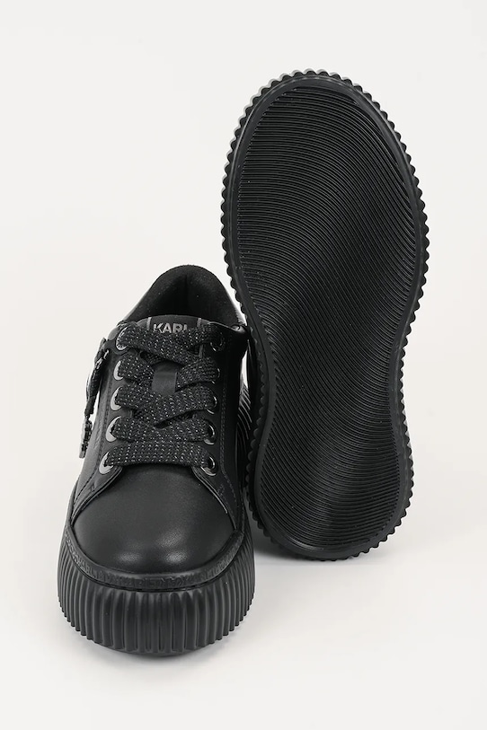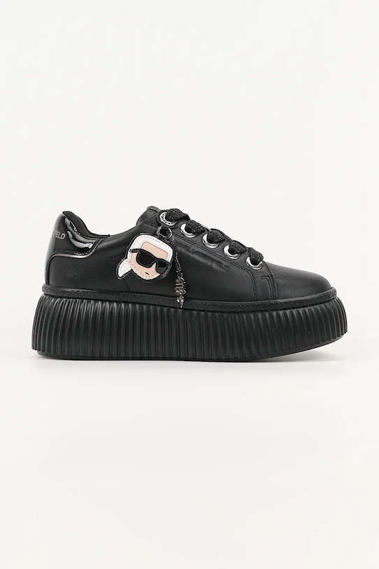 Кроссовки из коллекции Karl Lagerfeld. Верх из натуральной кожи не имеет пор и легко чистится влажной тканью. - Круглый, жёсткий носок. - Платформенная модель. - Усиленный задник с мягким наполнителем защищает пятку от истирания. - Классическая шнуровка позволяет индивидуально подогнать обувь по ноге. - Резиновая подошва прочная и устойчивая к повреждениям. - Модель с декоративной подвеской сбоку.