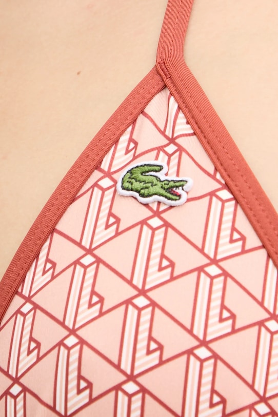 Плавательный бюстгальтер из коллекции Lacoste. Изготовлен из ткани с узором. - Данное изделие частично изготовлено из переработанного полиэстера. - Мягкая чашка без косточек и других жестких элементов обеспечивает полный комфорт использования. - Модель с регулируемой шнуровкой. - Дополнительный слой материала в виде подкладки увеличивает покрытие и обеспечивает дополнительный комфорт во время активности.
