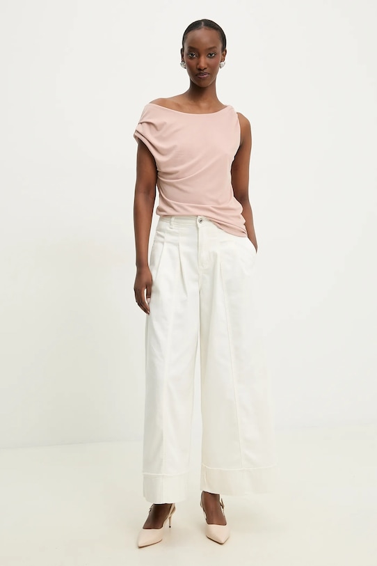 Эта блузка из коллекции Answear.LAB выполнена из тонкого, эластичного трикотажа. Модель выполнена из исключительно комфортного материала с высоким содержанием вискозы. - Простой дизайн, не стесняющий движений. - Классический круглый вырез. - Декоративные закладки. - Дополнительный слой материала в виде подкладки. - Длина: 56,5 см. - Ширина под мышками: 41 см. - Размеры указаны для размера: S.