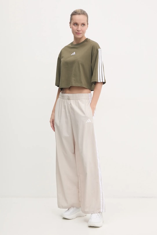 Эти брюки с парашютом adidas - удобный выбор для комфорта и стиля. Тканое полотно на ощупь мягкое и гладкое, а свободная форма позволяет свободно двигаться. Классические 3 полоски по бокам выделяются как в безделье, так и в дороге. Сочетайте эти универсальные брюки с любимым топом, чтобы создать непринужденный образ. Этот продукт изготовлен из 100% переработанных материалов. Повторно используя уже созданные материалы, мы помогаем сократить отходы и нашу зависимость от ограниченных ресурсов, а также уменьшить воздействие на окружающую среду производимой нами продукции.