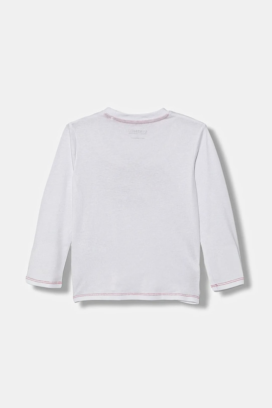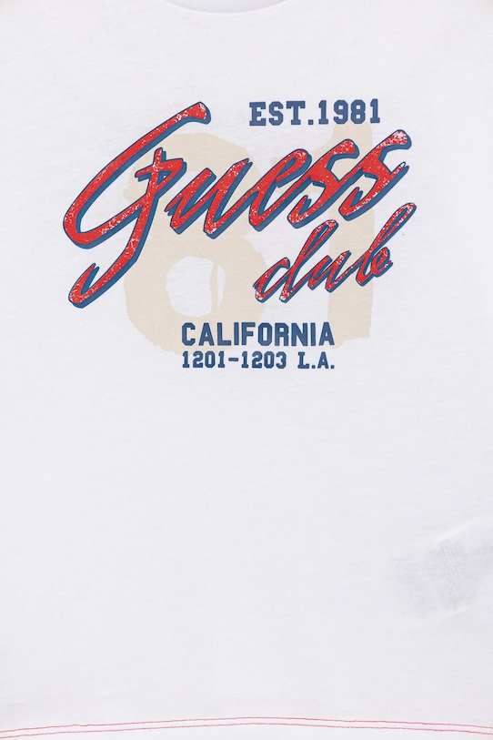 Детский лонгслив из коллекции Guess выполнен из тонкой эластичной ткани. Модель выполнена из исключительно комфортного хлопкового материала. - Изделие изготовлено из органического хлопка. - Простой дизайн, не стесняющий движений. - Классический круглый вырез. - Модель с принтом. - Длина рукава: 44 см. - Длина: 49 см. - Ширина под мышками: 37 см. - Размеры указаны для роста: 122 - 125 см.