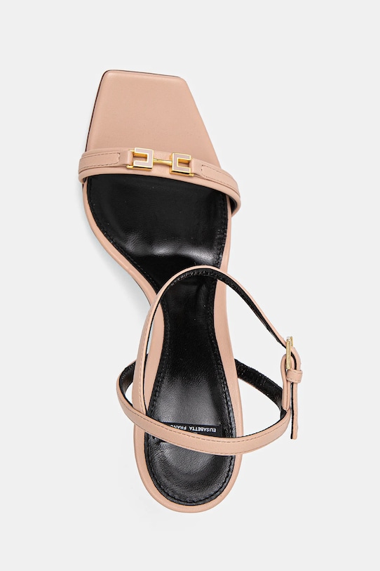 Сандалии из коллекции Elisabetta Franchi. Изготовлены из натуральной кожи. - Застежка-пряжка со штифтом для индивидуальной подгонки. - Модель с кожаной внутренней частью, комфортной для стопы, предотвращающей натирание, потертости и появление неприятного запаха. - Профилированная, мягкая стелька гарантирует комфорт использования. - Кожаная подошва. - Модель на шпильке. - Декоративная деталь спереди.