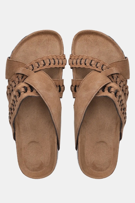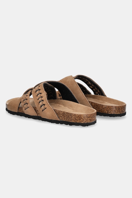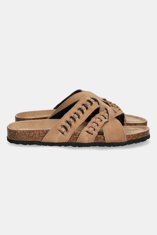 Эти шлёпанцы Answear.LAB изготовлены из замши. Эти лёгкие и удобные слипоны идеально подходят для повседневной носки. - Пробковая стелька анатомической формы повышает комфорт и поддерживает стопу. - Текстильная внутренняя часть комфортна для ног и облегчает содержание обуви в чистоте. - Подошва из пеноматериала обеспечивает более мягкое ощущение и дополнительную амортизацию. - Модель на плоской подошве.