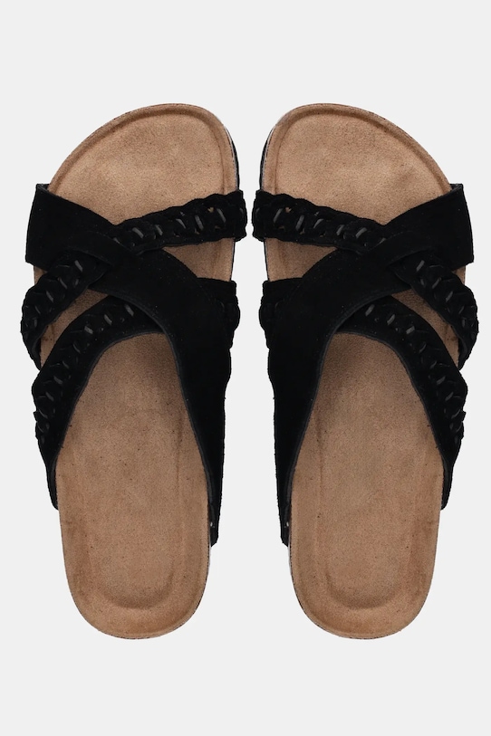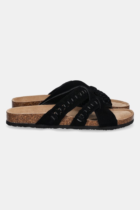Эти шлёпанцы Answear.LAB изготовлены из замши. Эти лёгкие и удобные слипоны идеально подходят для повседневной носки. - Пробковая стелька анатомической формы повышает комфорт и поддерживает стопу. - Текстильная внутренняя часть комфортна для ног и облегчает содержание обуви в чистоте. - Подошва из пеноматериала обеспечивает более мягкое ощущение и дополнительную амортизацию. - Модель на плоской подошве.