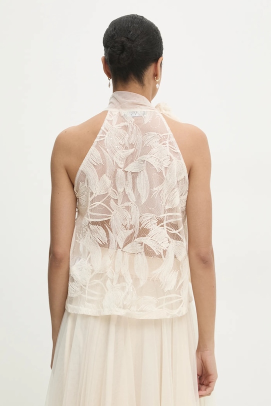 Эта блузка Answear.LAB выполнена из тонкой, слегка эластичной ткани. Полиамид обеспечивает большую прочность. - Простой дизайн, не стесняющий движений. - Вырез халтер. - Модель с регулируемой шнуровкой. - Модель изготовлена из прозрачного материала. - Модель с декоративной вышивкой. - Модель со вставками из пайеток. - Длина: 50 см. - Ширина под мышками: 49 см. - Указаны размеры: S/M.