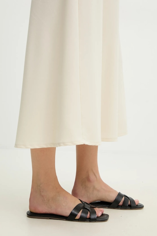 Эти шлёпанцы из коллекции Answear.LAB изготовлены из натуральной кожи. Они оснащены прочной и износостойкой резиновой подошвой. - Резиновая подошва прочная и устойчивая к повреждениям. - Модель на плоской подошве. - Модель с кожаной внутренней частью, комфортной для стопы, предотвращающей натирание, потертости и появление неприятного запаха. - Длина вставки: 23 см. - Размеры указаны для размера: 36.