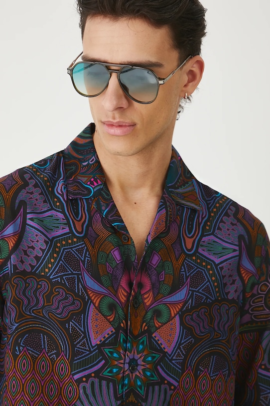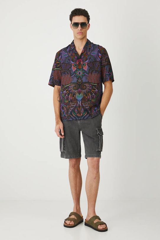 Эта рубашка из коллекции Medicine. Она сшита из ткани с узором и имеет воротник-стойку. - Рубашка свободного кроя отличается свободным кроем, обеспечивает комфорт и не стесняет движений. - Короткий рукав. - Курортный воротник. - Застежка на пуговицы. - Узорчатая ткань. - Абстрактный узор. - У него есть прорези. - Длина: 75 см. - Ширина груди: 56 см. - Размеры указаны для размера: M.