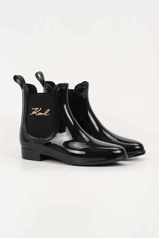Веллингтонские сапоги из коллекции Karl Lagerfeld. Верх из блестящего, гладкого материала без пор легко чистится влажной тканью. - Круглый, жёсткий носок. - Текстильная внутренняя часть комфортна для ног и облегчает содержание обуви в чистоте. - Усиленный задник обеспечивает отличную поддержку лодыжки и пятки. - Резиновая подошва прочная и устойчивая к повреждениям. - Нескользящая рифленая подошва.