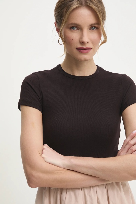 Эта футболка из коллекции Answear.LAB выполнена из тонкой, эластичной ткани с высоким содержанием хлопка. - Приталенный крой, подчеркивающий силуэт. - Классический круглый вырез. - Короткий рукав. - Модель выполнена из трикотажного полотна в рубчик, которое отличается особой эластичностью и мягкостью, благодаря чему хорошо облегает тело и обеспечивает комфорт при носке. - Гладкая трикотажная ткань.
