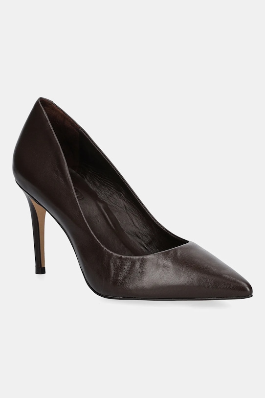 Эти туфли Answear.LAB изготовлены из натуральной кожи. Эта модель оснащена кожаной стелькой, которая благодаря естественным порам предотвращает натирание, потертости и появление неприятного запаха. - Заостренный, жесткий нос. - Усиленный задник обеспечивает отличную поддержку лодыжки и пятки. - Модель на шпильке. - Высота каблука: 9 см. - Длина вставки: 25 см. - Размеры указаны для размера: 39.