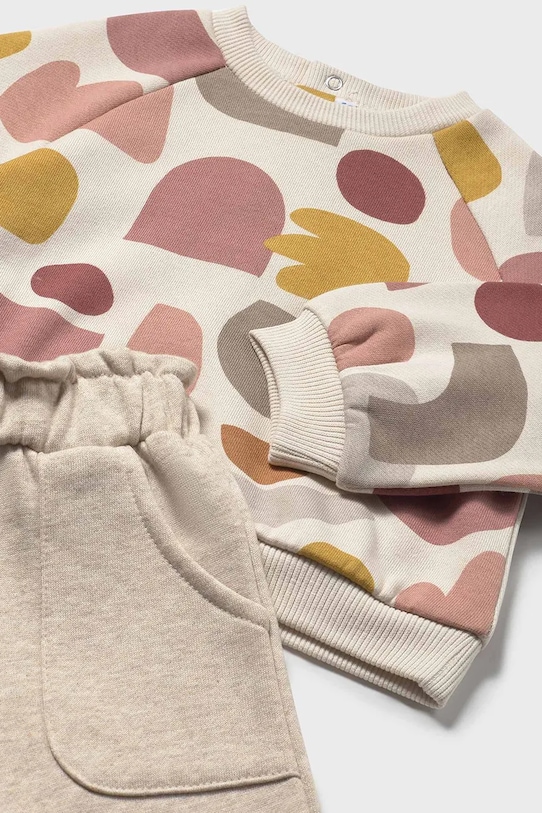 Детский комплект из коллекции Mayoral выполнен из приятного на ощупь трикотажного полотна. - В комплект входят брюки и толстовка. - Свободный крой, обеспечивающий полную свободу движений. - Рукава отделаны удобными эластичными манжетами. - Рукава реглан благодаря своей конструкции обеспечивают большую свободу движений. - Застегивается на короткую кнопку. - Эластичный пояс. - Длинный рукав.