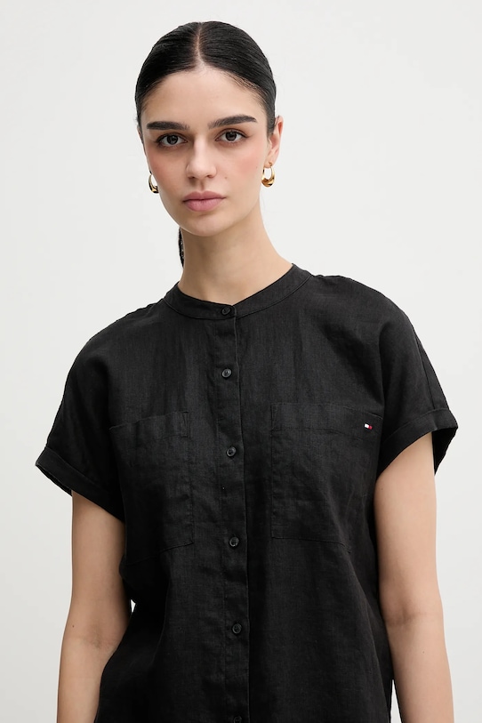 Эта рубашка Tommy Hilfiger сшита из тонкой, неэластичной ткани, изготовленной из дышащего льна. - Рубашка свободного кроя отличается свободным кроем, обеспечивает комфорт и не стесняет движений. - Короткий рукав. - Модель с воротником-стойкой. - У него есть прорези. - Нагрудные карманы. - Полосатый рисунок. - Длина: 63 см. - Ширина под мышками: 56 см. - Размеры указаны для размера: 36.