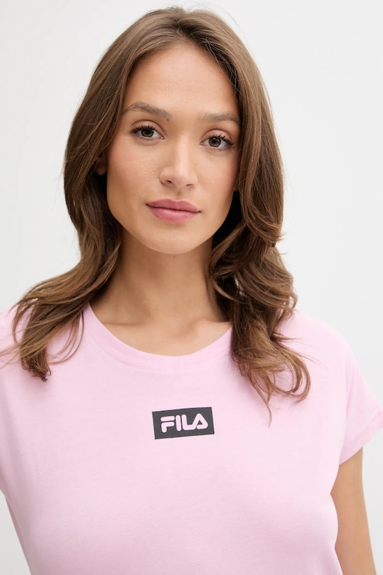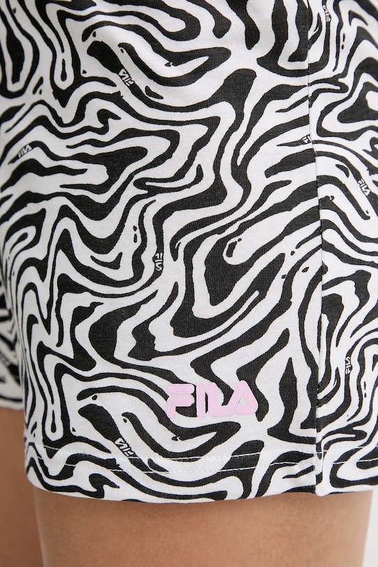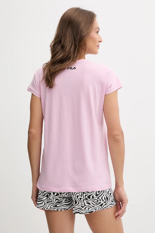 Эта пижама из коллекции Fila. Изготовлена из тонкого, эластичного трикотажа, исключительно комфортного и дышащего материала, идеально подходящего для теплого времени года. - Свободный верх и прямой низ. - Классический круглый вырез. - Крой рукава со спущенной линией плеча не ограничивает подвижность. - Модель с принтом. - Высокая талия. - Эластичный пояс предотвращает скольжение во время движения.