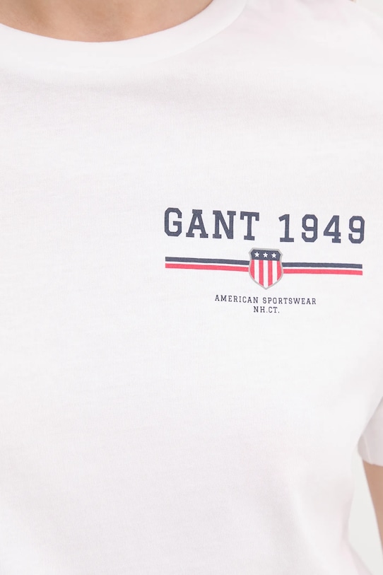 Эта футболка из коллекции Gant выполнена из тонкой, эластичной ткани на основе дышащего хлопка. - Простой дизайн, не стесняющий движений. - Классический круглый вырез. - Плоские швы защищают кожу от натирания и раздражения и обеспечивают высокий уровень комфорта во время занятий спортом. - Модель с принтом на груди. - Длина: 63 см. - Ширина под мышками: 46 - Размеры указаны для размера: S.