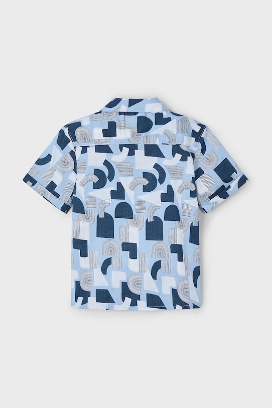 Детская рубашка из коллекции Mayoral. Изготовлена из дышащей хлопковой ткани. – Инициатива «Лучший хлопок». Изделия с этой маркировкой содержат не менее 50% хлопка от розничного продавца или бренда, участвующего в инициативе «Лучший хлопок» и инвестирующего в развитие BCI. - Простой дизайн, не стесняющий движений. - Короткий рукав. - Модель с воротником. - Застежка на пуговицы. - Узорчатая ткань.