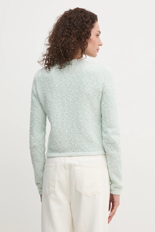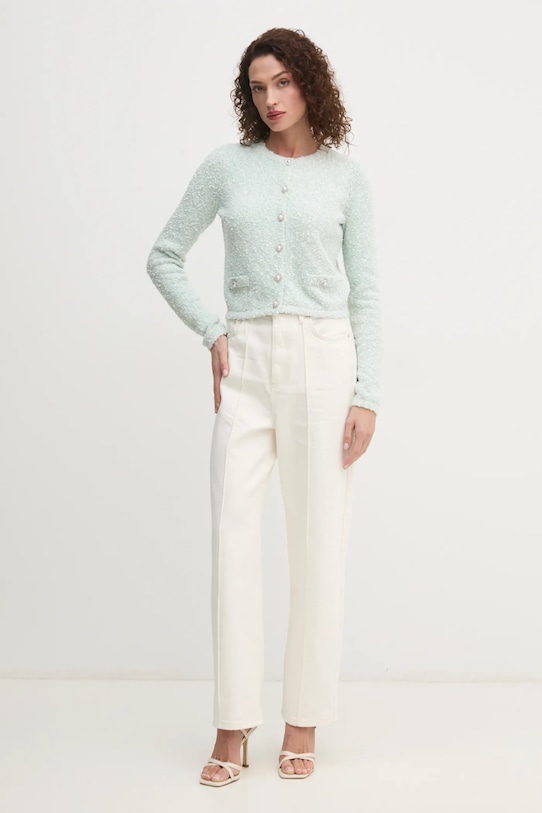 Этот кардиган из коллекции Guess связан из меланжевого трикотажа. Это эффектный, мерцающий материал. - Простой дизайн, не стесняющий движений. - Удобная застежка на кнопки позволяет легко надевать и снимать. - Плетение с декоративной металлической нитью. - Тонкий, эластичный трикотаж. - Длина рукава: 60 см. - Длина: 47 см. - Ширина под мышками: 45 см. - Размеры указаны для размера: S.