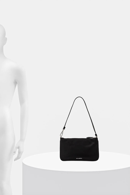 Сумка из коллекции Karl Lagerfeld. Модель с застёжкой выполнена из комбинации текстиля и экокожи.