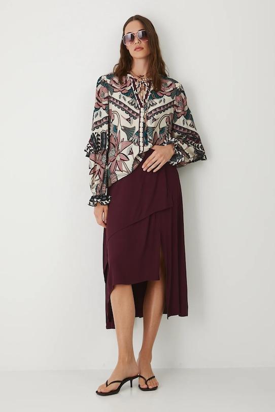 Юбка из коллекции Medicine. Асимметричный крой, выполнена из гладкой ткани. - Асимметричная модель. - Эластичная резинка сзади. - Застежка-молния сбоку. - У него есть щель. - Модель длины миди. - Гладкая ткань. - Ширина талии (до растягивания): 34,5 см. - Ширина талии (после растяжения): 45 см. - Длина спереди: 64,5 см. - Длина спинки: 84 см. - Размеры указаны для размера: S.