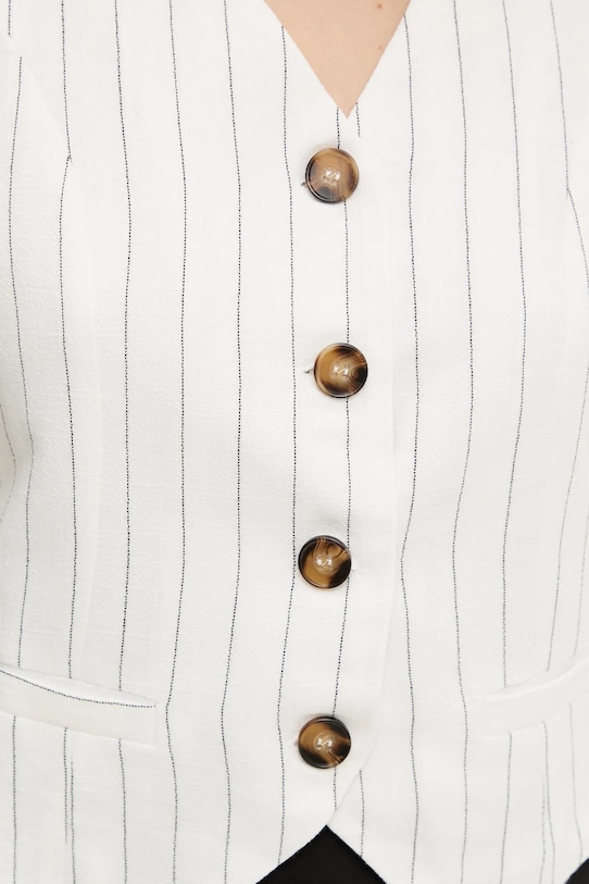 Жилет из коллекции Answear.LAB, выполненный из ткани с рисунком. Эта модель выполнена из исключительно комфортного и дышащего материала, идеально подходящего для теплого времени года. - Простой дизайн, не стесняющий движений. - Удобная застежка на кнопки позволяет легко надевать и снимать. - Модель на подкладке. - Длина: 52 см. - Ширина под мышками: 45,5 см. - Размеры указаны для размера: S.
