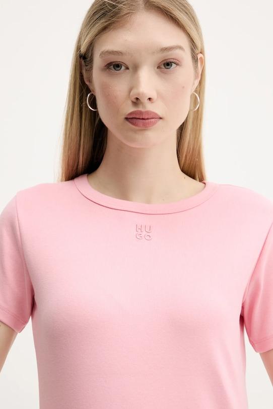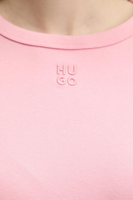 Эта футболка из коллекции HUGO выполнена из тонкой, эластичной ткани. Модель выполнена из исключительно комфортного материала с высоким содержанием хлопка. - Эта модель частично изготовлена из переработанного полиэстера. - Простой дизайн, не стесняющий движений. - Классический круглый вырез. - Вышитый логотип. - Длина: 60 см. - Ширина под мышками: 41 см. - Размеры указаны для размера: S.