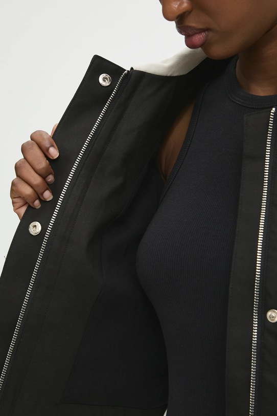 Куртка из коллекции Answear.LAB. Эта модель без подкладки выполнена из гладкой ткани. Коллекция доступна эксклюзивно на Answear.com. - Простой дизайн, не стесняющий движений. - Застежка-молния и кнопки. - Манжеты застегиваются на кнопки. - Неутепленная модель с подкладкой. - Два боковых накладных кармана. - Длина: 44 см. - Ширина под мышками: 51 см. - Размеры указаны для размера: S.