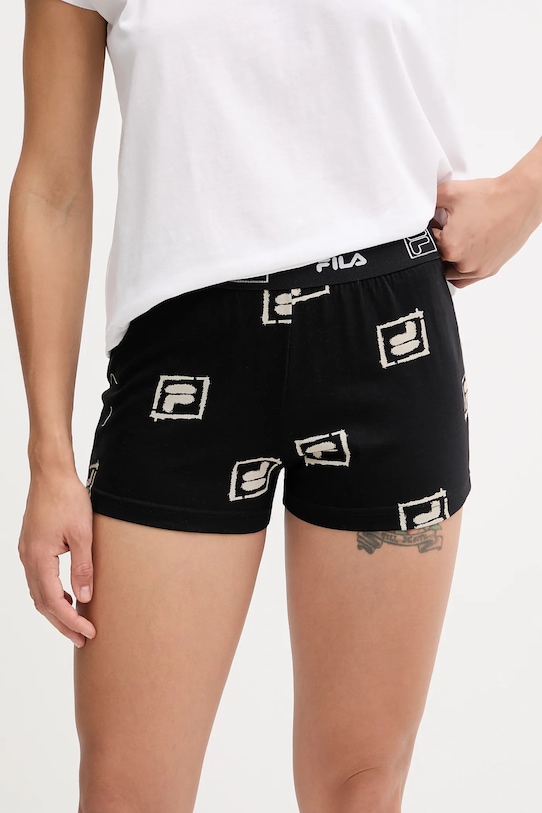 Пижама из коллекции Fila. Изготовлена из тонкой, эластичной ткани. Изготовлена из дышащего хлопкового материала. - Простой дизайн, не стесняющий движений. - Круглый ребристый вырез. - Короткий рукав. - Графический логотип бренда спереди. - Шорты свободные на бедрах. - Эластичный пояс предотвращает скольжение во время движения. - Прямая нога полной длины. - Узорчатое трикотажное полотно.