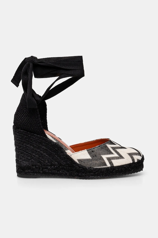 Эспадрильи из коллекции Missoni выполнены из текстиля. Эта модель имеет кожаную подкладку, которая обеспечивает комфорт и предотвращает натирание, появление неприятных запахов и раздражение кожи. - Слегка затвердевший нос. - Модель с регулируемой шнуровкой. - Резиновая подошва прочная и устойчивая к повреждениям. - Высота клина: 10 см. - Длина вставки: 25 см. - Размеры указаны для размера: 38.