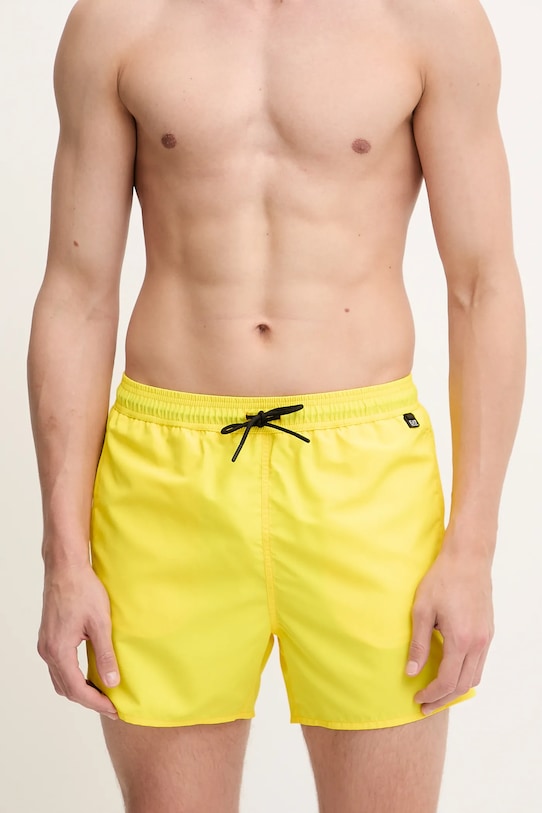 Эти плавки-шорты из коллекции EA7 Emporio Armani изготовлены из тонкой, неэластичной ткани. Полиэстер обеспечивает лучшую устойчивость к сминанию. - Простой дизайн, не стесняющий движений. - Эластичный пояс со шнурками. - Сетчатая внутренняя подкладка для дополнительного комфорта. - Два боковых накладных кармана. - Ширина талии: 38 см. - Длина: 36 см. - Размеры указаны для размера: M.