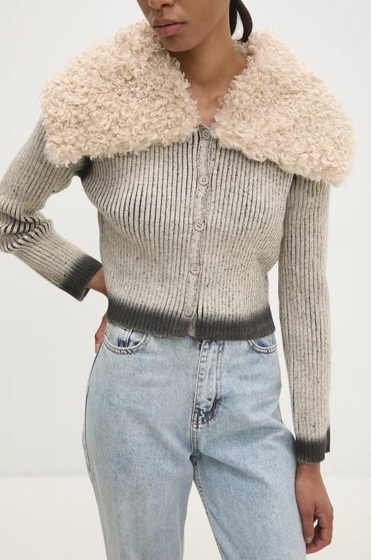 Этот кардиган из коллекции Answear.LAB выполнен из узорчатого трикотажа. Он также имеет пришивной воротник. - Простой дизайн, не стесняющий движений. - Застежка на пуговицы. - Трикотаж средней толщины. - Рукава и низ изделия отделаны манжетами для защиты от неблагоприятных погодных условий. - Длина рукава: 57 см. - Длина: 49 см. - Ширина под мышками: 41 см. - Указаны размеры: S/M.