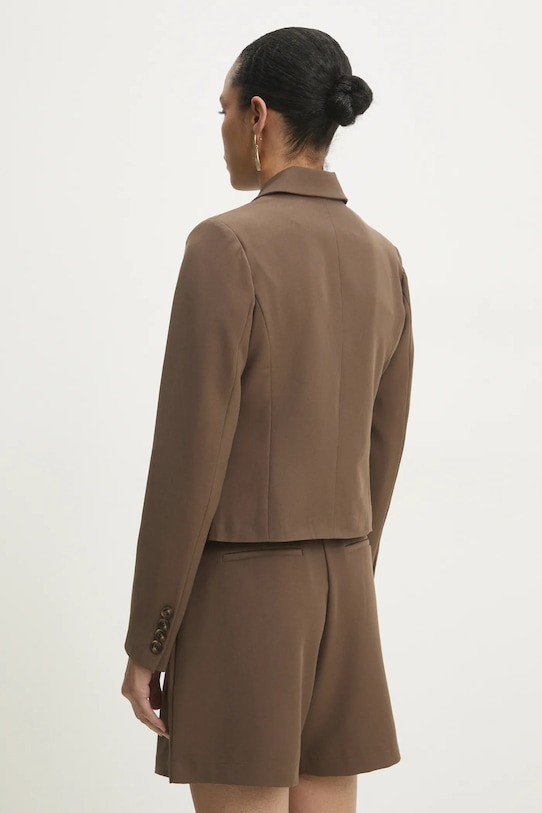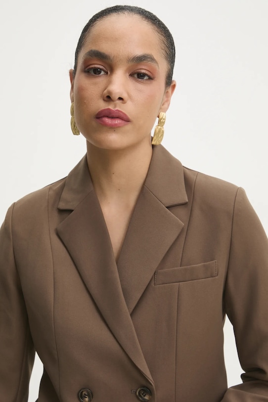 Этот блейзер из коллекции Answear.LAB выполнен из гладкой ткани. Содержание полиэстера делает материал менее мнущимся. - Простой дизайн, не стесняющий движений. - Дополнительный слой материала в виде подкладки. - Классические лацканы. - Двубортный пиджак с застежкой на пуговицы. - Накладной карман на груди. - В плечах вшиты подкладки. - Длинный рукав. - Тонкая, неэластичная ткань.
