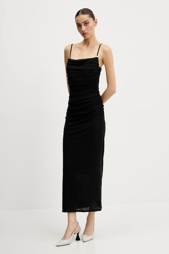 Это платье из коллекции HUGO выполнено из тонкого эластичного трикотажа. Содержание полиэстера делает ткань менее мнущейся. - Приталенный крой с привлекательными оборками. - Удобная застежка-молния сбоку позволяет легко надевать и снимать. - Модель на подкладке. - Регулируемые ремни. - Ширина под мышками: 38 см. - Ширина талии: 29 см. - Длина: 135 см. - Размеры указаны для размера: S.