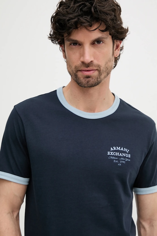 Эта футболка из коллекции Armani Exchange выполнена из тонкой, эластичной ткани. Модель выполнена из исключительно комфортного хлопкового материала. – Проект Armani Sustainability Project – Эта модель изготовлена из органических и переработанных материалов. Кроме того, в процессе производства используется меньше воды и энергии. - Обычная посадка. - Классический круглый вырез. - Модель с аппликацией.