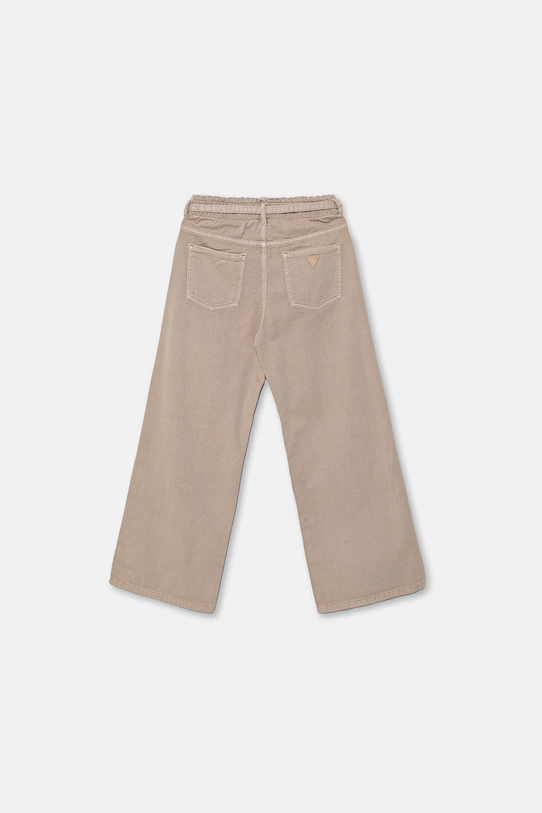 Детские брюки из коллекции Guess из тонкой, неэластичной ткани. Модель выполнена из исключительно комфортного, высококачественного материала. - Брюки слегка приталенные на бедрах. - Прямая нога полной длины. - Модель с высокой талией, застежкой на пуговицы и молнию. - Широкий эластичный пояс. - Ремешок в комплекте. - Два боковых накладных кармана. - Два накладных кармана на ягодицах.