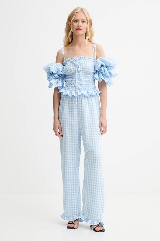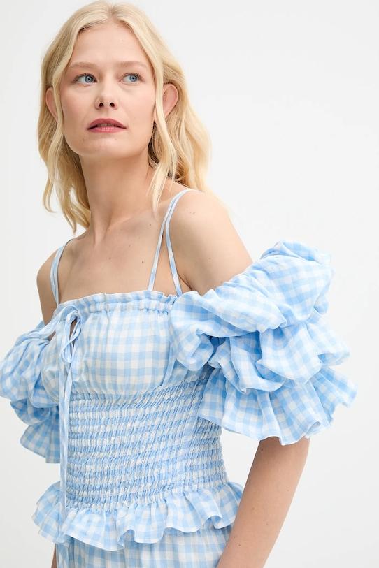 Эта блузка из коллекции The Sleeper выполнена из тонкой, неэластичной ткани. Модель выполнена из дышащего материала с высоким содержанием льна. - Приталенный крой. - Короткие, пышные рукава. - Регулируемые, несъемные лямки. - Модель с декоративными оборками. - Декоративная шнуровка спереди. - Эластичный пояс для индивидуальной посадки. - Длина: 35 см. - Ширина под мышками: 32 см.