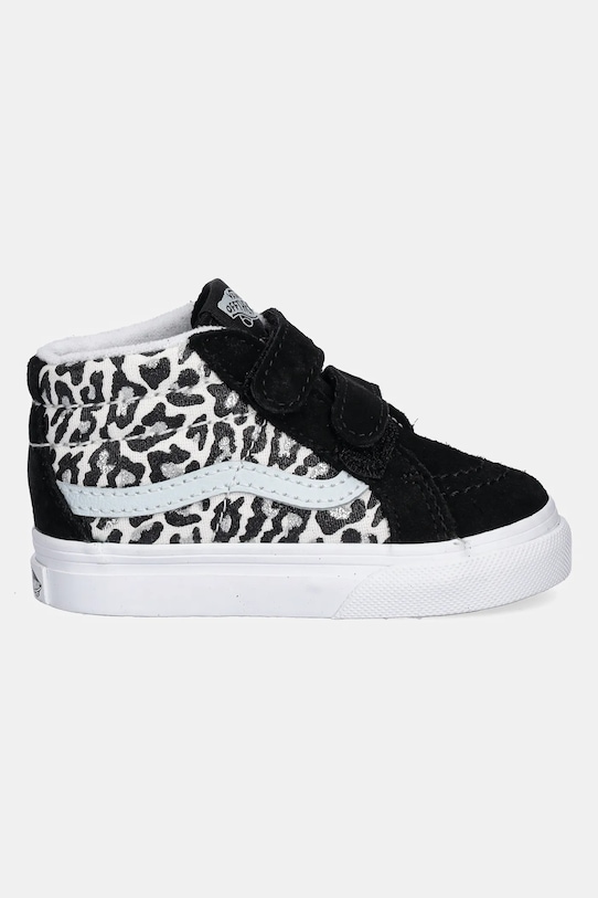 Детские кеды из коллекции Vans из текстильного материала. - Поднятый верх. - Слегка жесткий, круглый носок, чтобы пальцы ног могли свободно двигаться в обуви, не испытывая слишком большого давления или люфта. - Усиленный задник обеспечивает отличную поддержку лодыжки и пятки. - Застежка-липучка позволяет легко надевать и снимать обувь. - Резиновая подошва прочная и устойчивая к повреждениям.