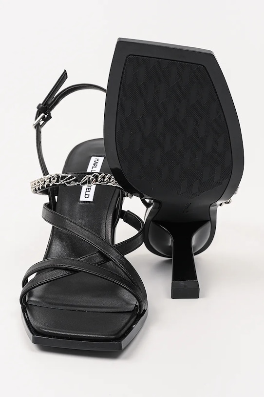 Сандалии из коллекции Karl Lagerfeld. Изготовленные из натуральной кожи с аппликациями, эти сандалии имеют кожаную подкладку, которая обеспечивает комфорт и предотвращает натирание, потертости и появление неприятного запаха. - Гладкий материал. - Модель с аппликацией. - Застежка-пряжка со штифтом для индивидуальной подгонки. - Удобный кожаный салон. - Модель на шпильке. - Устойчивая подошва.