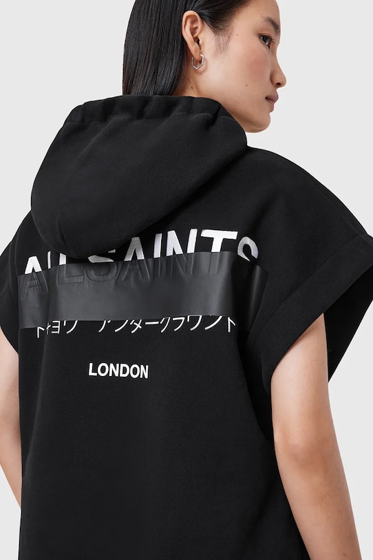 Толстовка с капюшоном из коллекции AllSaints. Изготовлена из слегка эластичной хлопковой ткани. - Органический хлопок выращивается без использования вредных химикатов, химических пестицидов и искусственных удобрений. - Свободный крой. - Капюшон с завязками. - Боковые застежки-кнопки. - Заниженная линия плеча. - Короткий рукав. - Модель с принтом на груди и спине. - Отделка ребер.