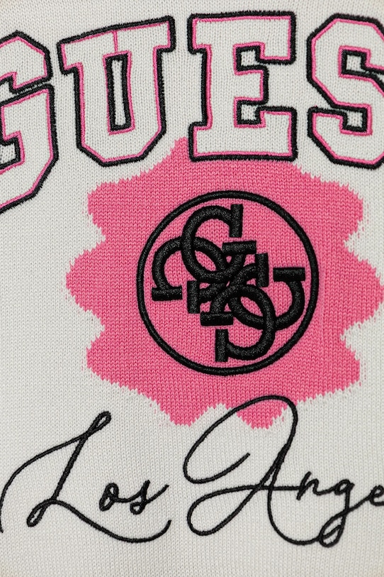 Этот детский свитер из коллекции Guess выполнен из тонкого трикотажа. Высокие терморегулирующие свойства шерсти согревают в холод и охлаждают в жару. - Свободный покрой, не стесняющий движений. - Классический круглый вырез. - Рукава и низ изделия отделаны удобными эластичными манжетами. - Модель с декоративной аппликацией. - Крой рукава со спущенной линией плеча не ограничивает подвижность.
