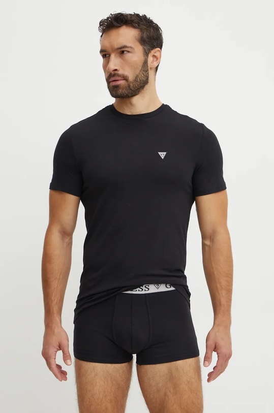 Пижама из коллекции Guess. Модель выполнена из гладкого трикотажного полотна, отличающегося особой комфортностью и высоким содержанием хлопка. - Простой дизайн, не стесняющий движений. - Классический круглый вырез. - Короткий рукав. - Эластичный пояс. - Длина: 25 см. - Ширина под мышками: 45 см. - Ширина талии: 36 см. - Длина штанины: 69 см. - Размеры указаны для размера: M.