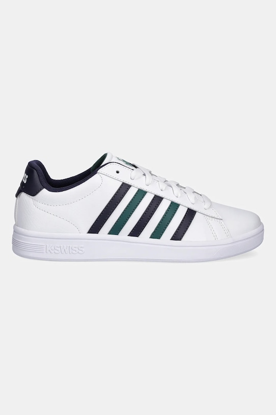 Эти кроссовки K-Swiss изготовлены из комбинации кожи с покрытием и синтетического материала. Эти лёгкие и удобные кроссовки идеально подходят для повседневной носки. - Зажатый нос. - Усиленный задник с мягким наполнителем защищает пятку от истирания. - Текстильная внутренняя часть комфортна для ног и облегчает содержание обуви в чистоте. - Резиновая подошва прочная и устойчивая к повреждениям.