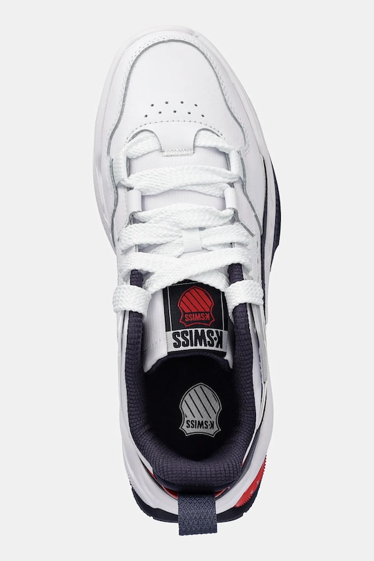 Эти кроссовки K-Swiss изготовлены из комбинации кожи с покрытием и синтетического материала. Эти лёгкие и удобные кроссовки идеально подходят для повседневной носки. - Зажатый нос. - Усиленный задник с мягким наполнителем защищает пятку от истирания. - Текстильная внутренняя часть комфортна для ног и облегчает содержание обуви в чистоте. - Резиновая подошва прочная и устойчивая к повреждениям.