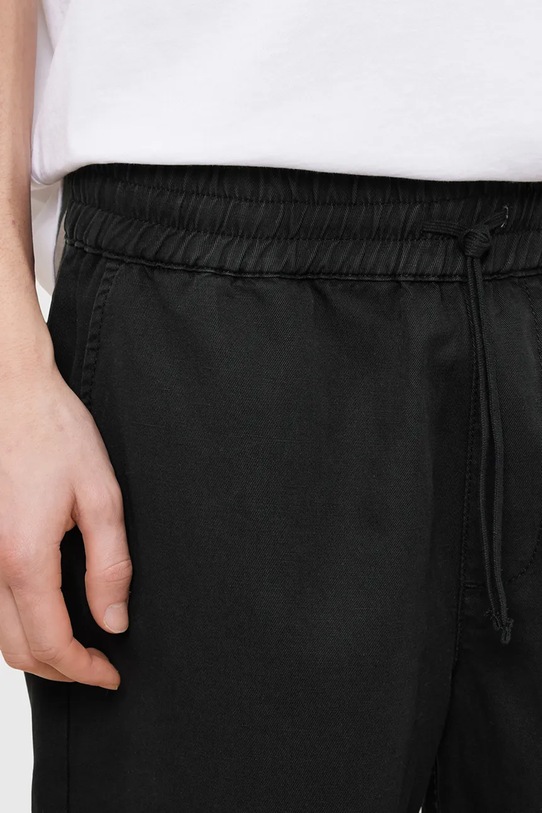 Шорты из коллекции AllSaints. Изготовлены из хлопкового трикотажа, обеспечивают комфорт и свободу движений. - Органический хлопок выращивается без использования вредных химикатов, химических пестицидов и искусственных удобрений. - Простой дизайн, не стесняющий движений. - Эластичный пояс со шнурками. - Накладные карманы. - Накладные карманы на спинке для удобного хранения мелких предметов.