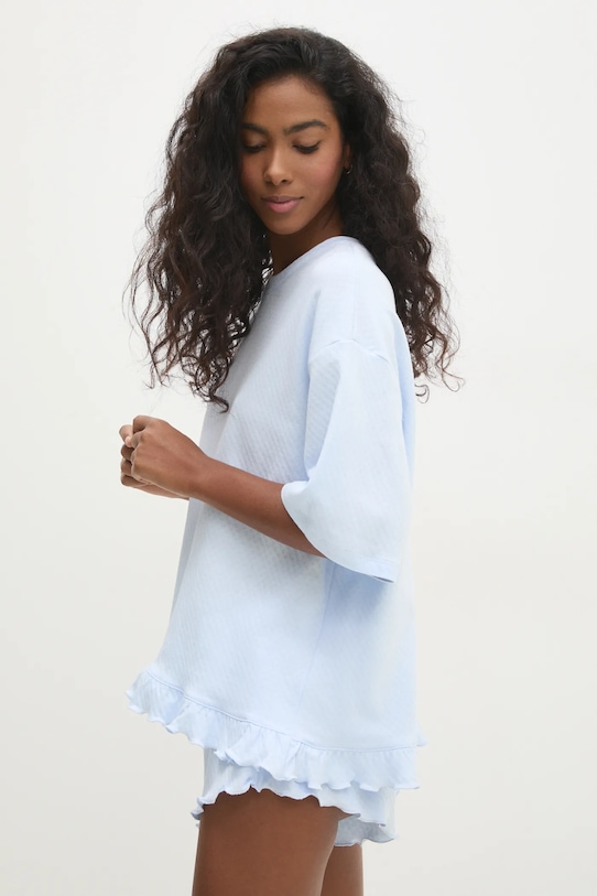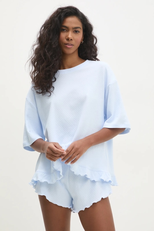 Пижама из коллекции Answear.LAB. Изготовлена из тонкой, эластичной ткани. - Свободный крой, обеспечивающий полную свободу движений. - Крой рукава со спущенной линией плеча не ограничивает подвижность. - Узкая резинка на талии. - Длина: 62 см. - Ширина под мышками: 58 см. - Ширина талии: 36 см. - Высота талии: 28 см. - Длина штанины: 19 см. - Размеры указаны для размера: S.
