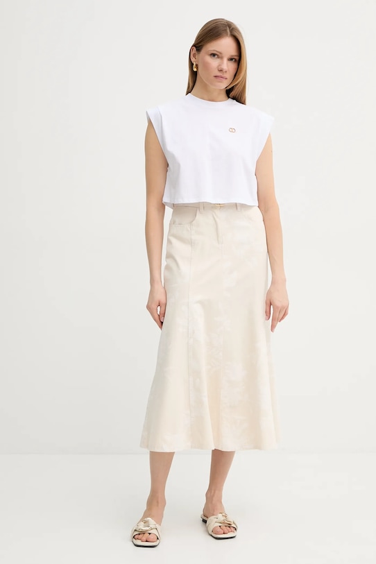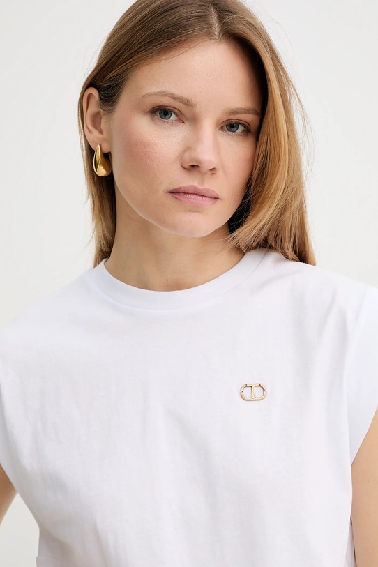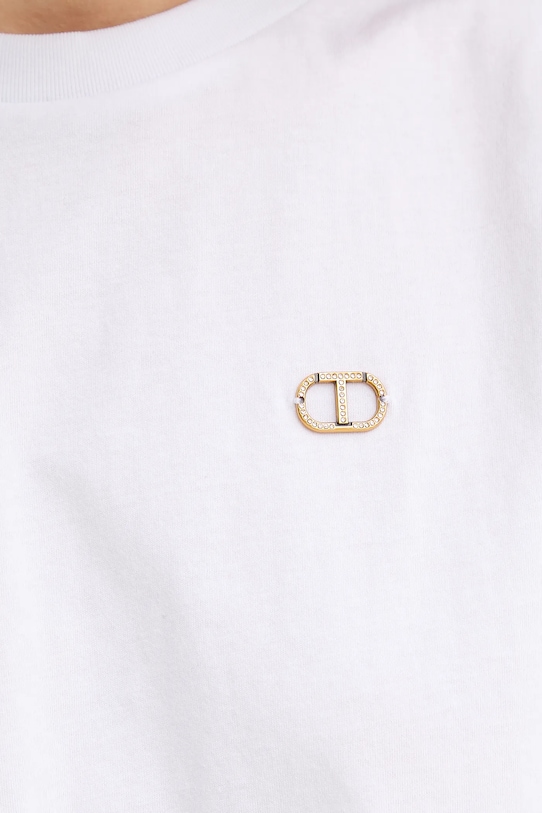 Футболка из коллекции Twinset из хлопкового, эластичного трикотажного полотна. - Обычная посадка. - В плечах вшиты подкладки. - Модель с аппликацией.