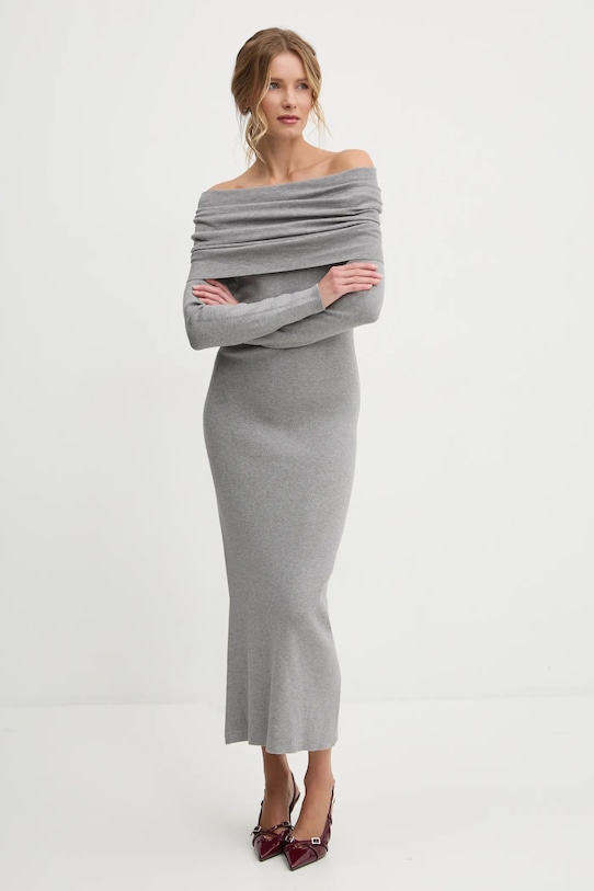 Платье из коллекции Answear.LAB, выполненное из гладкого джерси. Доступно эксклюзивно на Answear.com. - Расклешенный крой. - Трикотажное полотно в рубчик. - Модель с высоким воротом. - Длинный рукав. - Тонкий, эластичный трикотаж. - Впечатляющий крой. - Длина рукава: 65 см. - Длина: 132 см. - Ширина под мышками: 33 см. - Ширина талии: 30 см. - Указаны размеры: S/M.