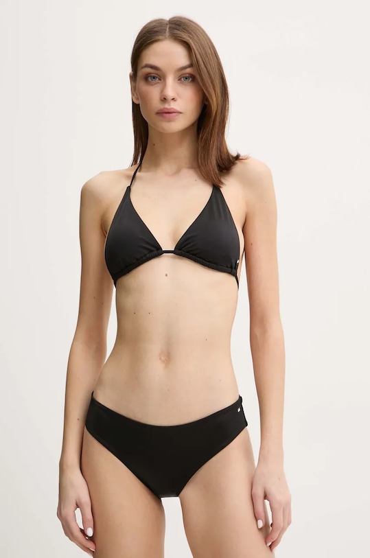 Плавательный бюстгальтер из коллекции BOSS. Изготовлен из эластичного трикотажного полотна. - Изделия линейки BETTER BOSS не менее чем на 60% изготовлены из материалов, полученных более экологичным способом. - Съемные подушечки слегка придают жесткость, стабилизируют бюст и обеспечивают дополнительную защиту. - Регулируемые, несъемные бретели с завязками на шее. - Модель с регулируемой шнуровкой.