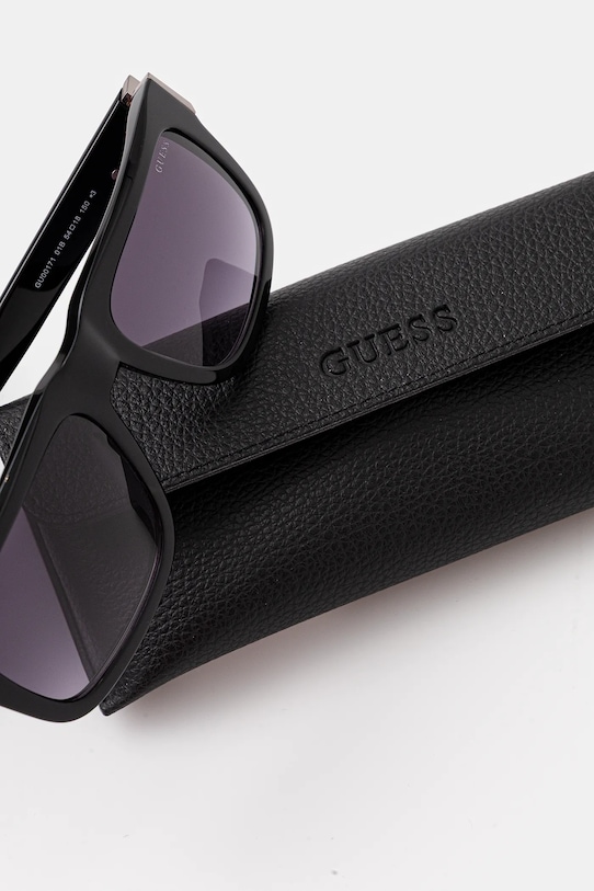 Очки из коллекции Guess. Эта модель с гладкими линзами и пластиковой оправой. - Категория 3 (пропускает 8–18% света) — самая распространённая и универсальная категория затемняющих фильтров. Очки категории 3 идеально подходят для повседневного использования в солнечные дни и для отдыха в жарких странах. - Форма оправы: прямоугольная. - В комплект модели входят чехол и салфетка для протирки очков.