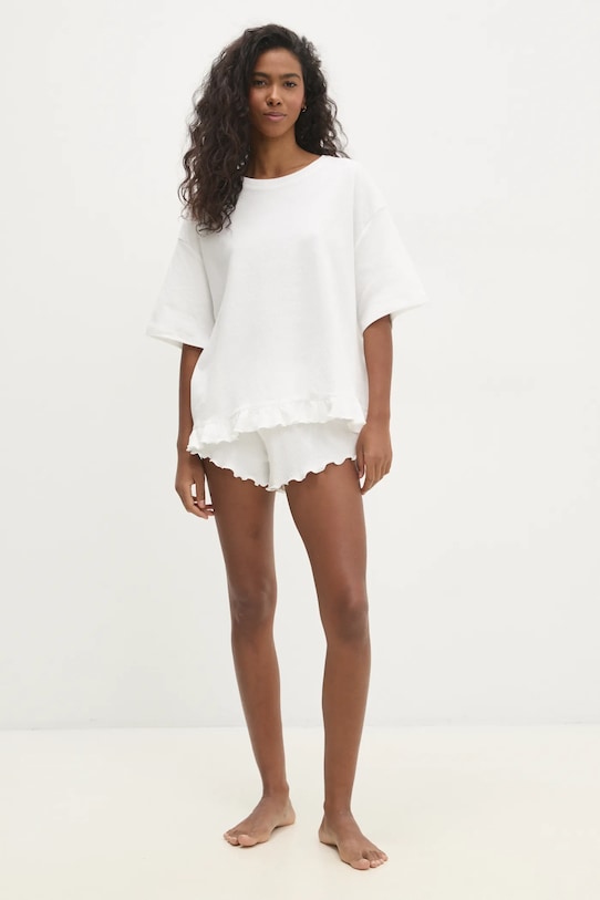 Пижама из коллекции Answear.LAB. Изготовлена из тонкой, эластичной ткани. - Свободный крой, обеспечивающий полную свободу движений. - Крой рукава со спущенной линией плеча не ограничивает подвижность. - Узкий эластичный пояс. - Длина: 62 см. - Ширина под мышками: 58 см. - Ширина талии: 36 см. - Высота талии: 28 см. - Длина штанины: 19 см. - Размеры указаны для размера: S.