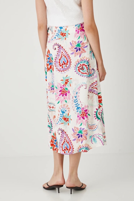 Юбка из коллекции «Медицина». Расклешенный фасон из узорчатой ткани. - Материал с добавлением льна обеспечивает комфорт и воздухопроницаемость. - Расклешенный крой. - Модель с откидной передней частью. - Завяжите на талии. - Застежка-молния. - Модель длины миди. - Узорчатая ткань. - Узор пейсли. - Ширина талии: 37 см. - Длина: 84 см. - Размеры указаны для размера: S.